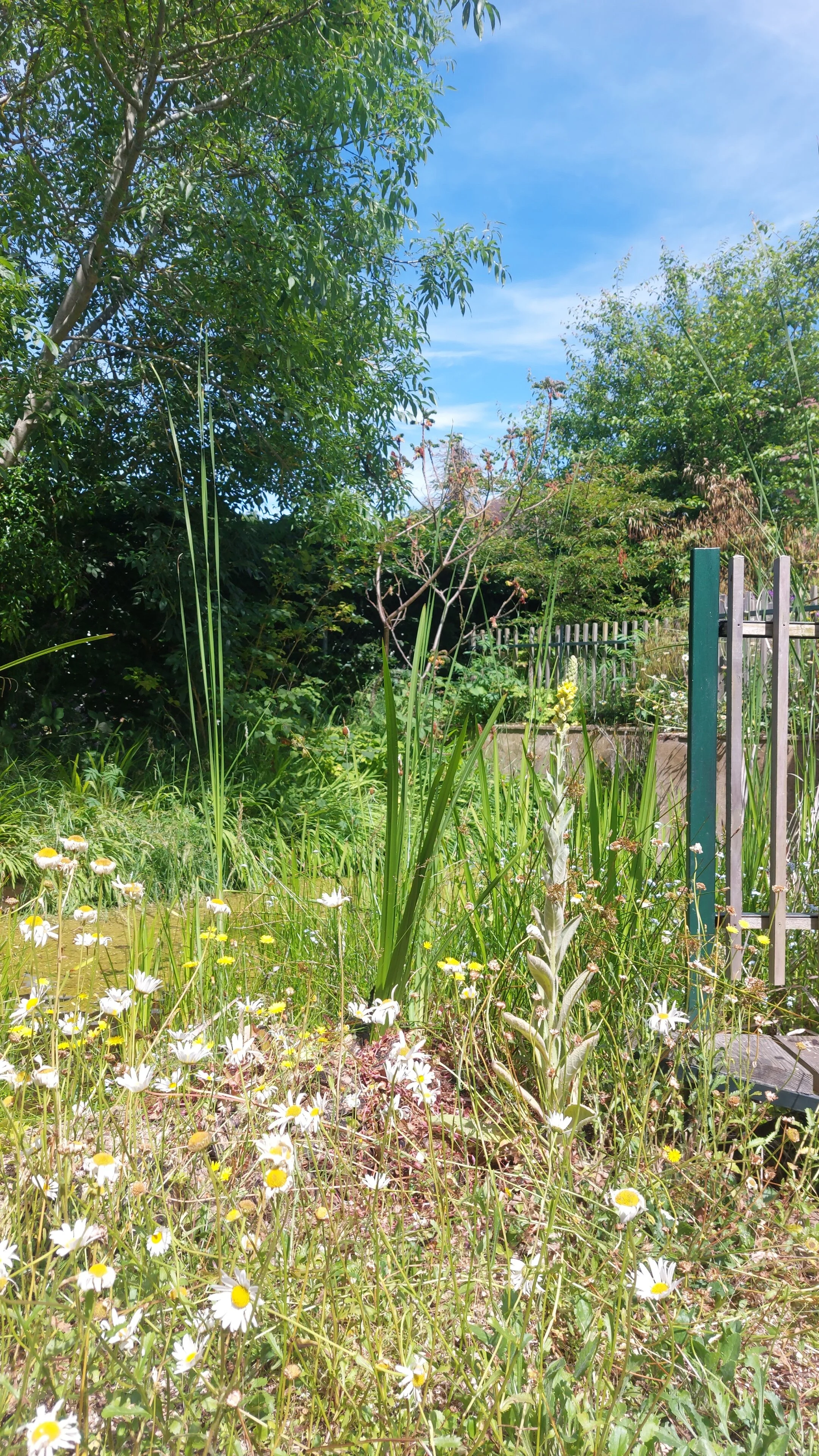 Wildlife has been one of the real rewards. I’ve spotted four species of dragonfly, along with demoiselles and damselflies. The pond is thick with newts, often outnumbering the reeds. Sometimes the shallow water dries up, but that stress actually benefits biodiversity.