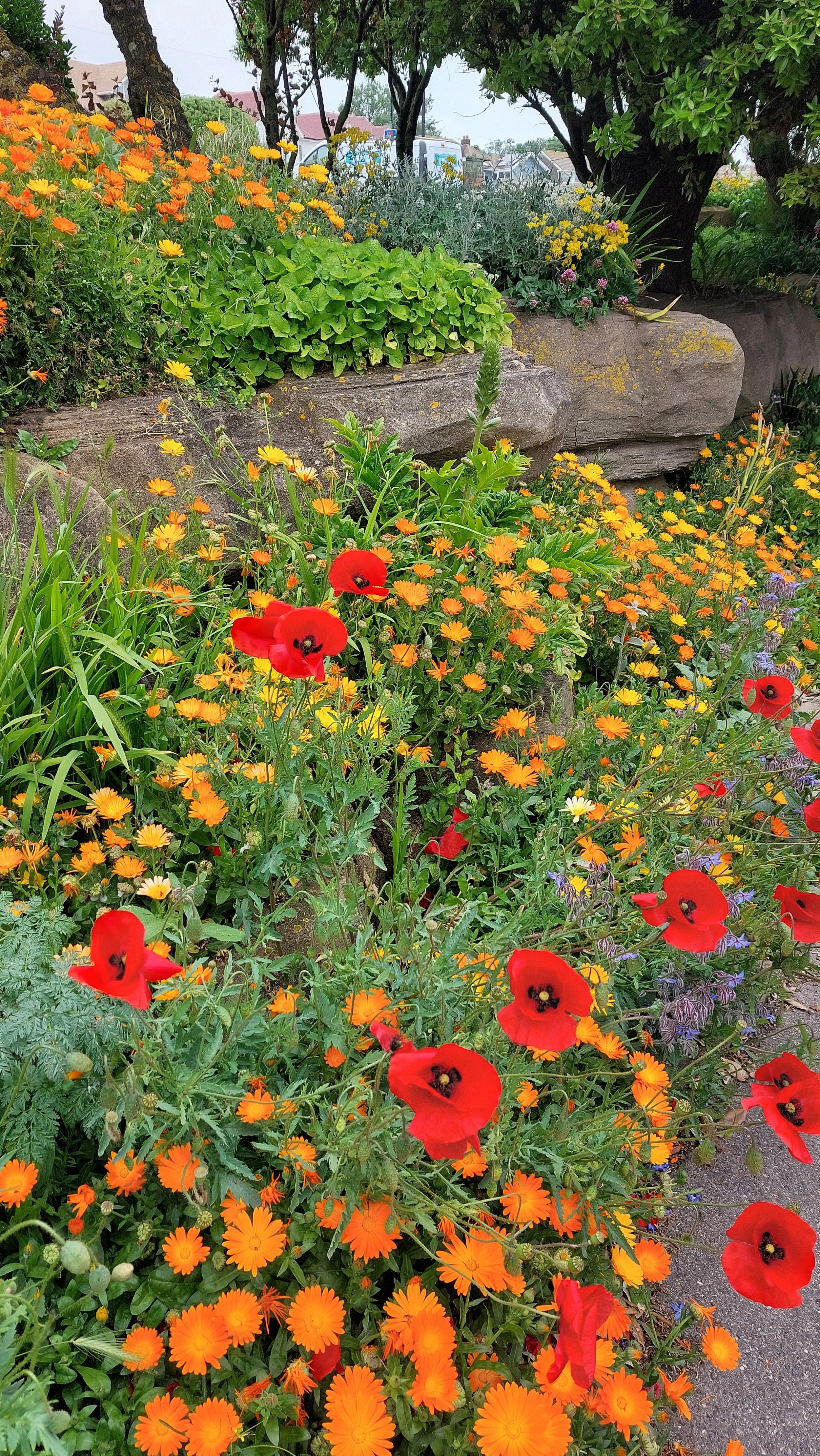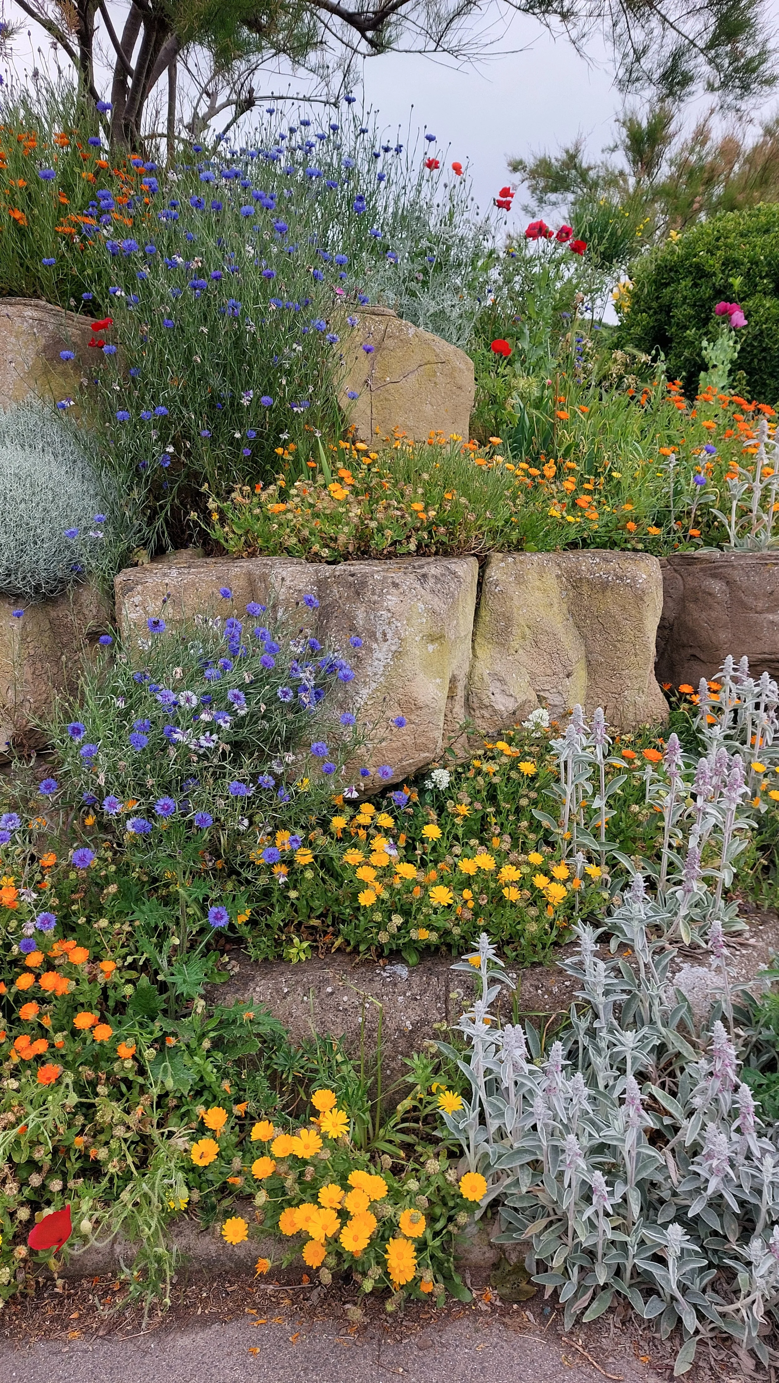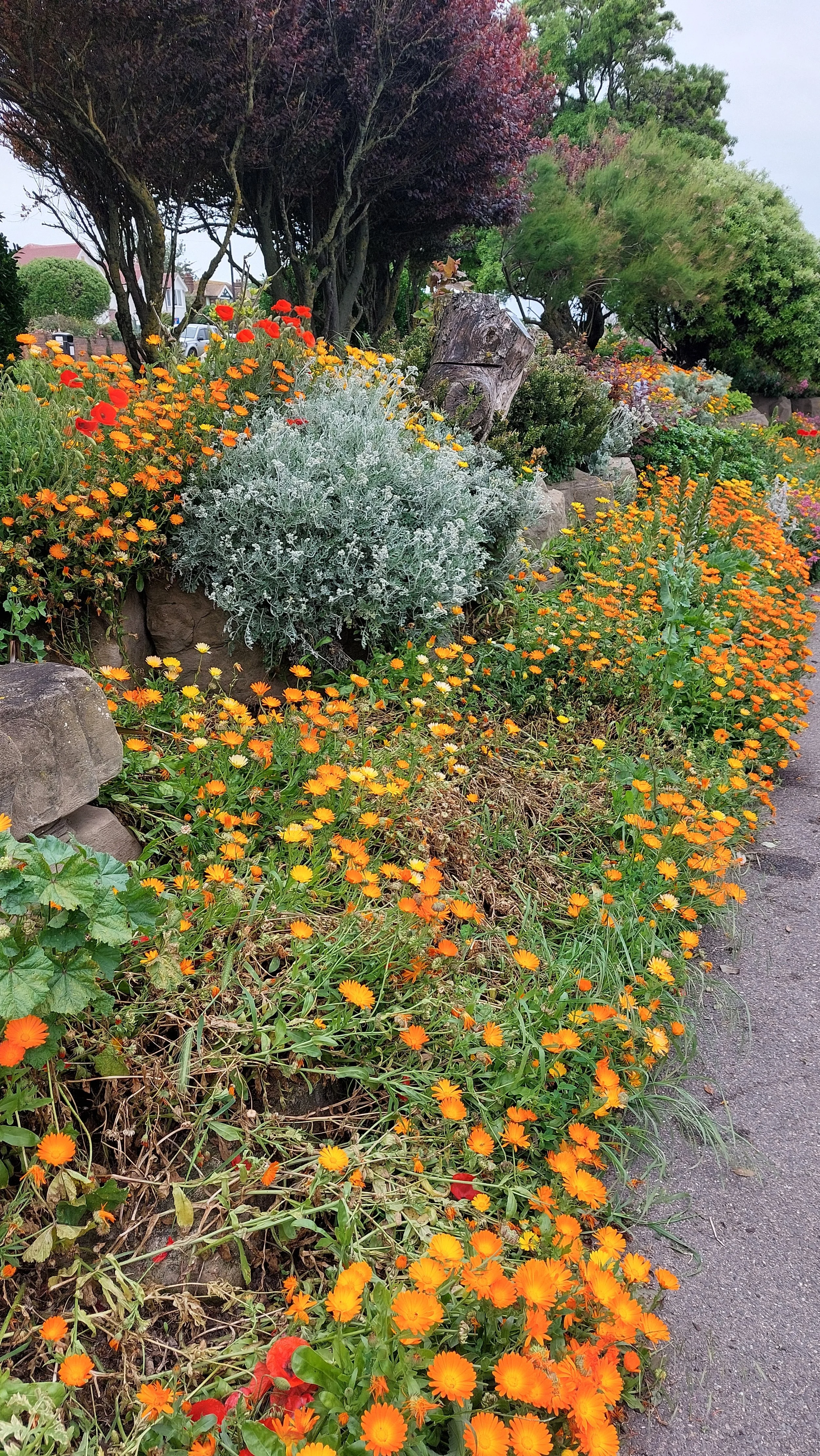 A design for a beach inspired garden. Large boulders, sleepers, and swathes of flowering groundcover, an old rowing boat turned into a pond and a sleeper backed concrete bench, drawing from Derek Jarman’s garden and this beautiful rock garden on the Ramsgate esplanade. If anyone would like something like this, drop me a line. (not a fishing one)